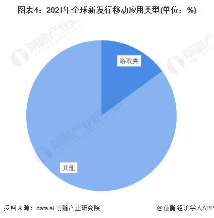 移动游戏近年来持续火爆,新款 APP 也层出不穷。2021 年全球新发行 APP 数量在 200 万款左右,其中游戏类占比约 15%,在全球移动应用中占领了较为重要的地位。