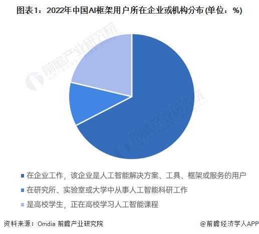 根据 Omdia 的数据,在中国直接参与人工智能技术、人工智能框架或人工智能应用开发,或以非技术角色参与人工智能项目管理群体中,超过 67% 用户来自于企业,11% 用户是在研究所、实验室或大学中从事人工智能科研工作,21% 是在校学生,正在高校学习人工智能的课程。